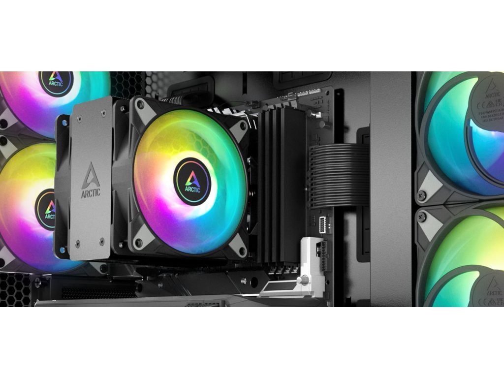 Chladič ARCTIC Freezer 36 ARGB je navržen pro efektivní odvod tepla díky čtyřem heatpipe a optimalizované konstrukci pasivu. Dvojice 120mm ventilátorů z řady P s vysokým statickým tlakem zajišťuje silný airflow a stabilní výkon i při vyšší zátěži. Díky promyšlenému proudění vzduchu a kvalitním materiálům dosahuje chladič vysoké účinnosti při zachování nízkých teplot.