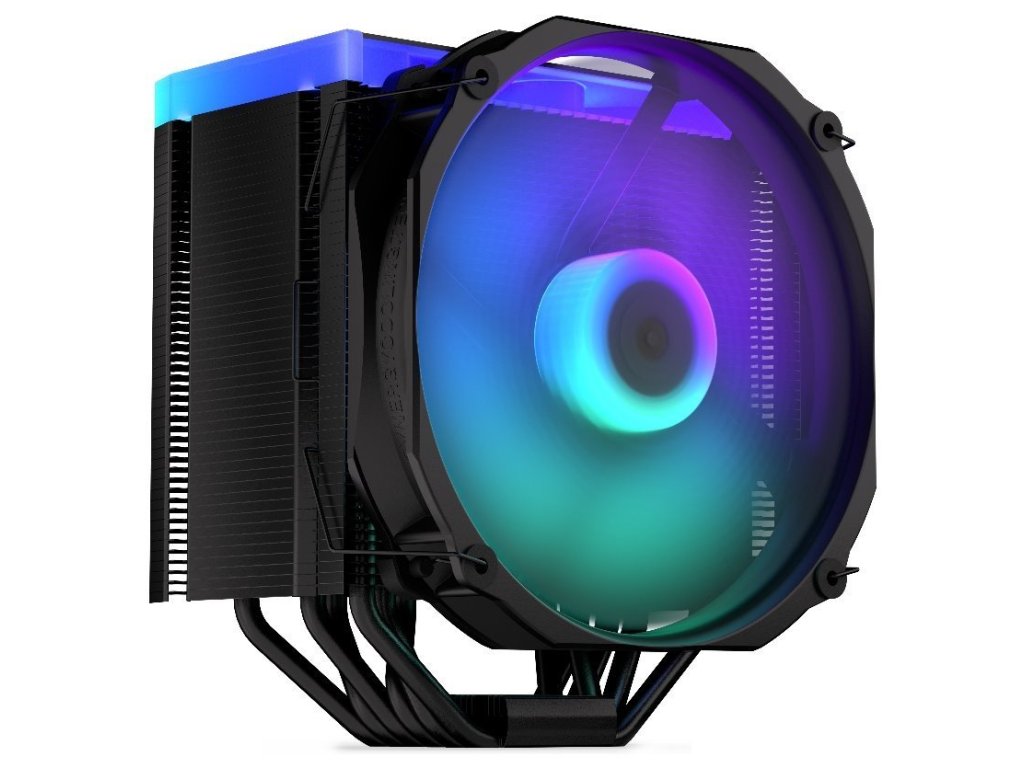 Chladič Endorfy Fortis 5 ARGB využívá šest tepelných trubic a husté žebrování pro optimální odvod tepla. Ventilátor Fluctus 140 PWM s odolným FDB ložiskem umožňuje semi-pasivní režim a design lopatek je optimalizován pro vysoký airflow při minimální hlučnosti.